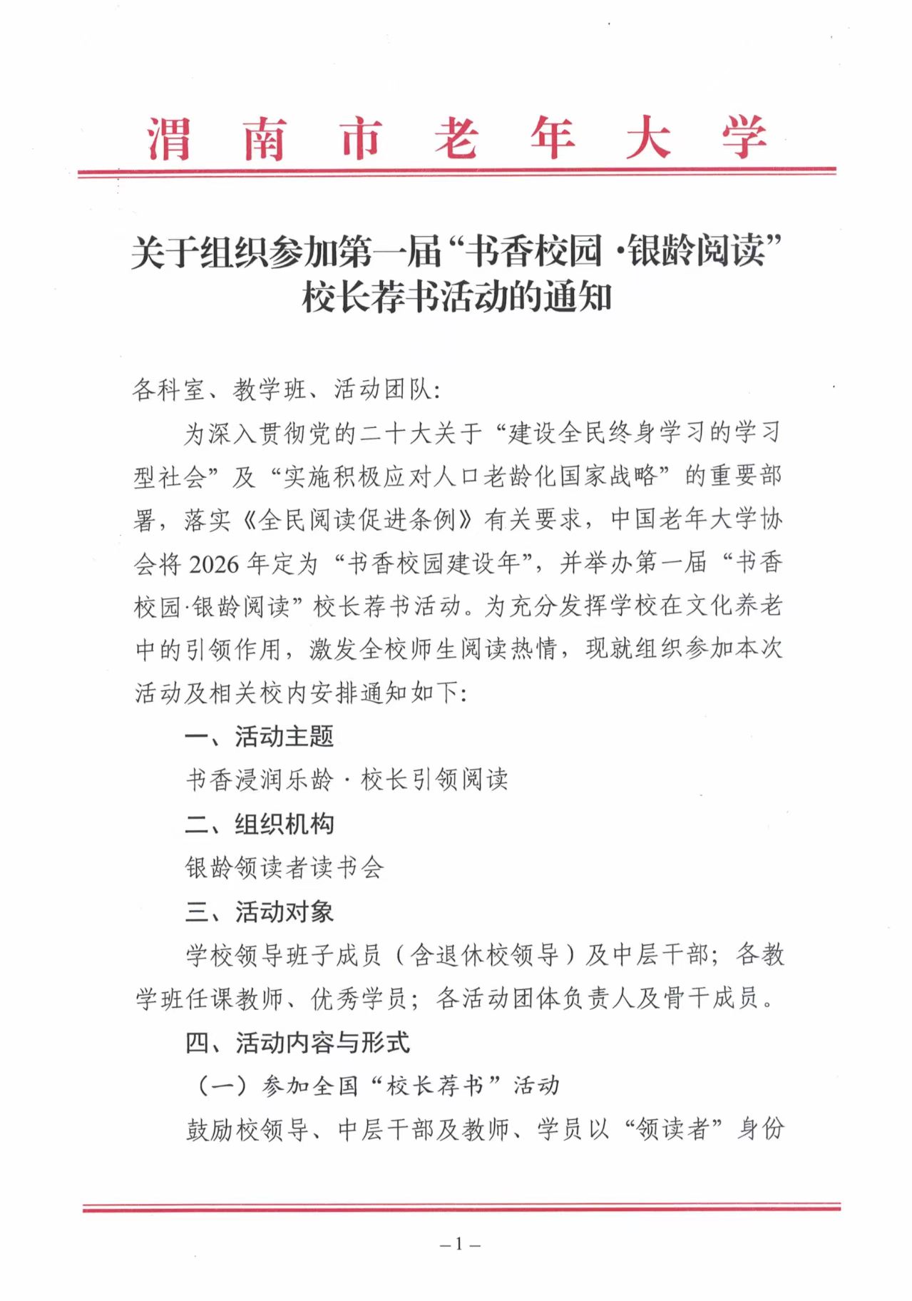 关于组织参加第一届“书香校园 银龄阅读”校长荐书活动的通知